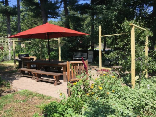The finished project looks beautiful from all approaches and gives people a sense of enjoying an outdoor dining room. The trellis offers additional privacy for diners, while allowing visibility through the trellis for viewing flora, fauna, and people outside the “room.”